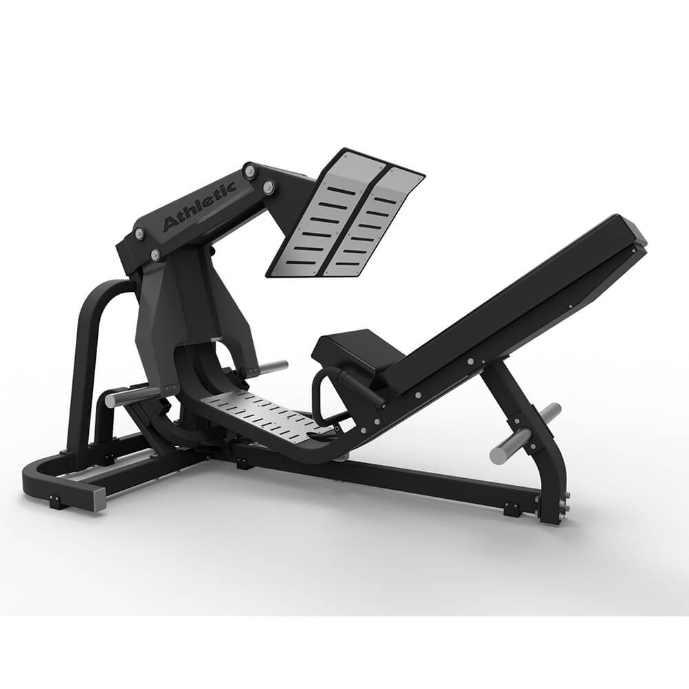 ELEVATE YOUR WORKOUT WITH THE LINE IMPETUS ANGLED LEG PRESS, FEATURING A WIDE FOOTRES THAT INCREASES THE VARIETY OF EXERCISE OPTIONS. HIGH-PERFORMANCE LINEAR BEARINGS AND CASE-HARDENED ALLOY STEEL SHAFTING ALLOW FOR SMOOTH MOVEMENTS FROM START TO FINISH. THE MACHINE HAS CUSHIONED SEAT AND ADJUSTABLE RANGE OF MOTION TO SUIT DIFFERENT SIZES AND SHAPES OF USERS. .”