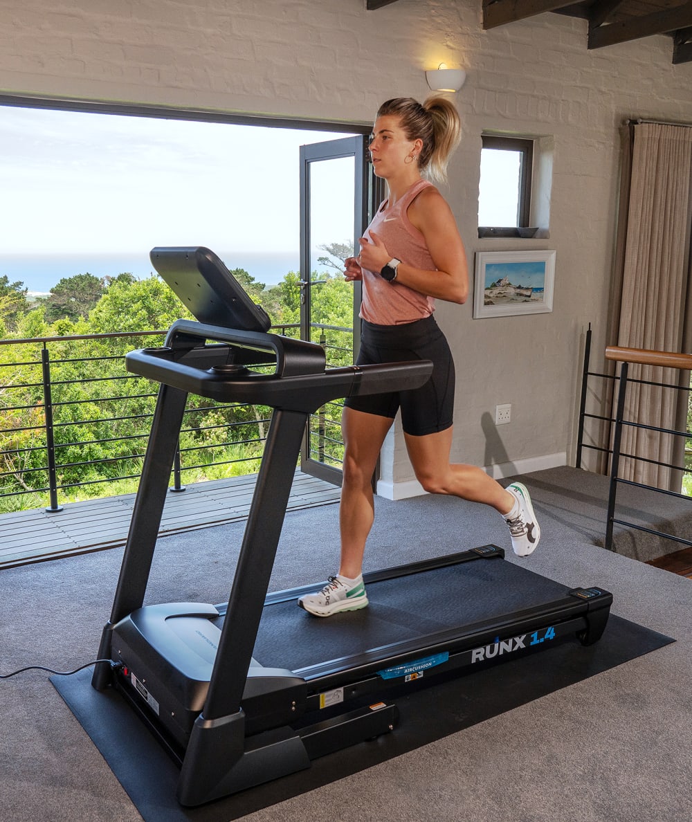 - Safe And Comfortable: The Run X1.4 is built with a large running surface. With a length of 130cm and a width of 46cm you can freely walk, jog or run without any restriction. The increased size and additional cushioning of the running deck offers up to a 20% reduction of impact through the joints while maintaining a natural and organic running experience. This makes the Run X1.4 one of the safest and most comfortable treadmills in the market.